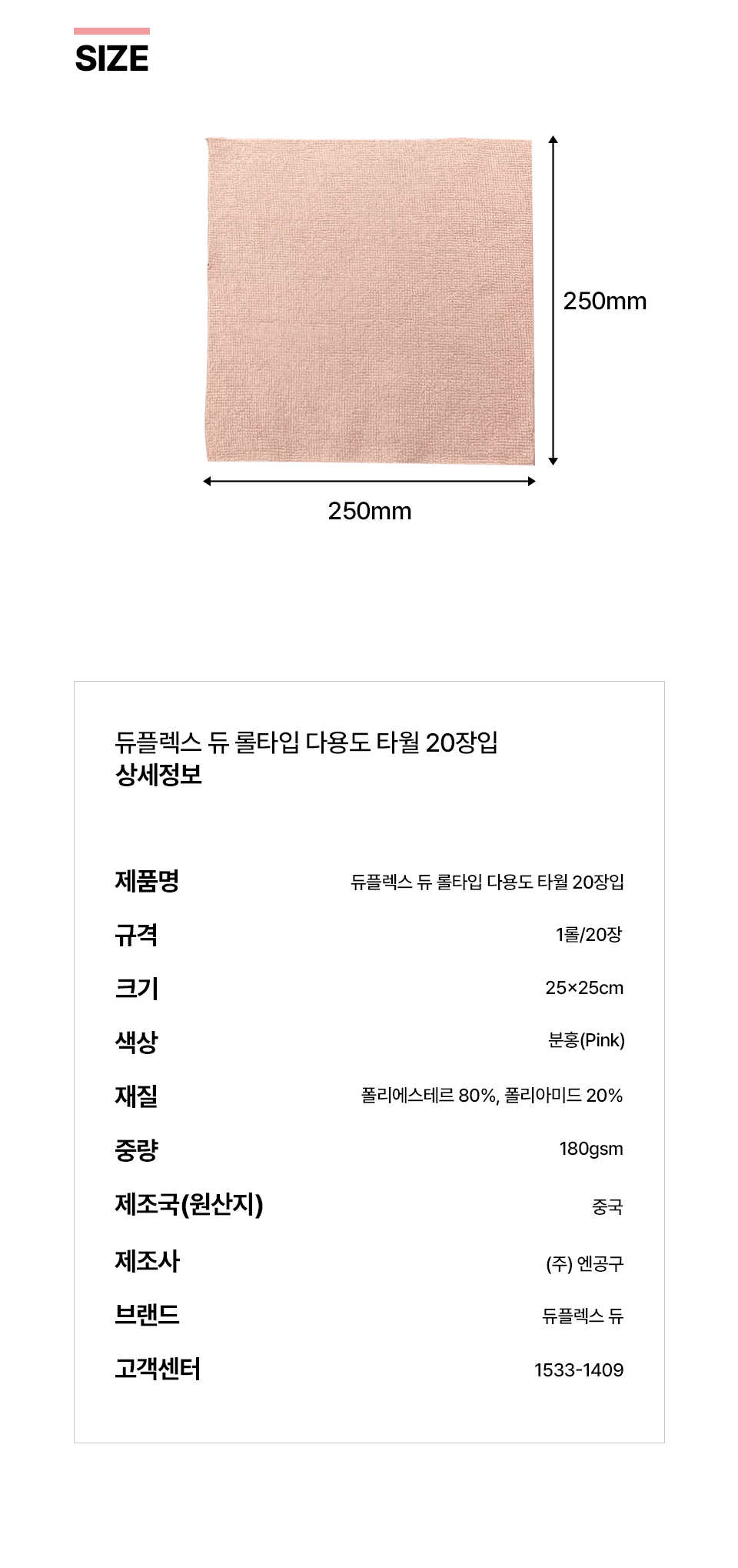 DUPLEX DIEU 듀플렉스 듀 롤타입 다용도타월 20매입 25x25cm 1개