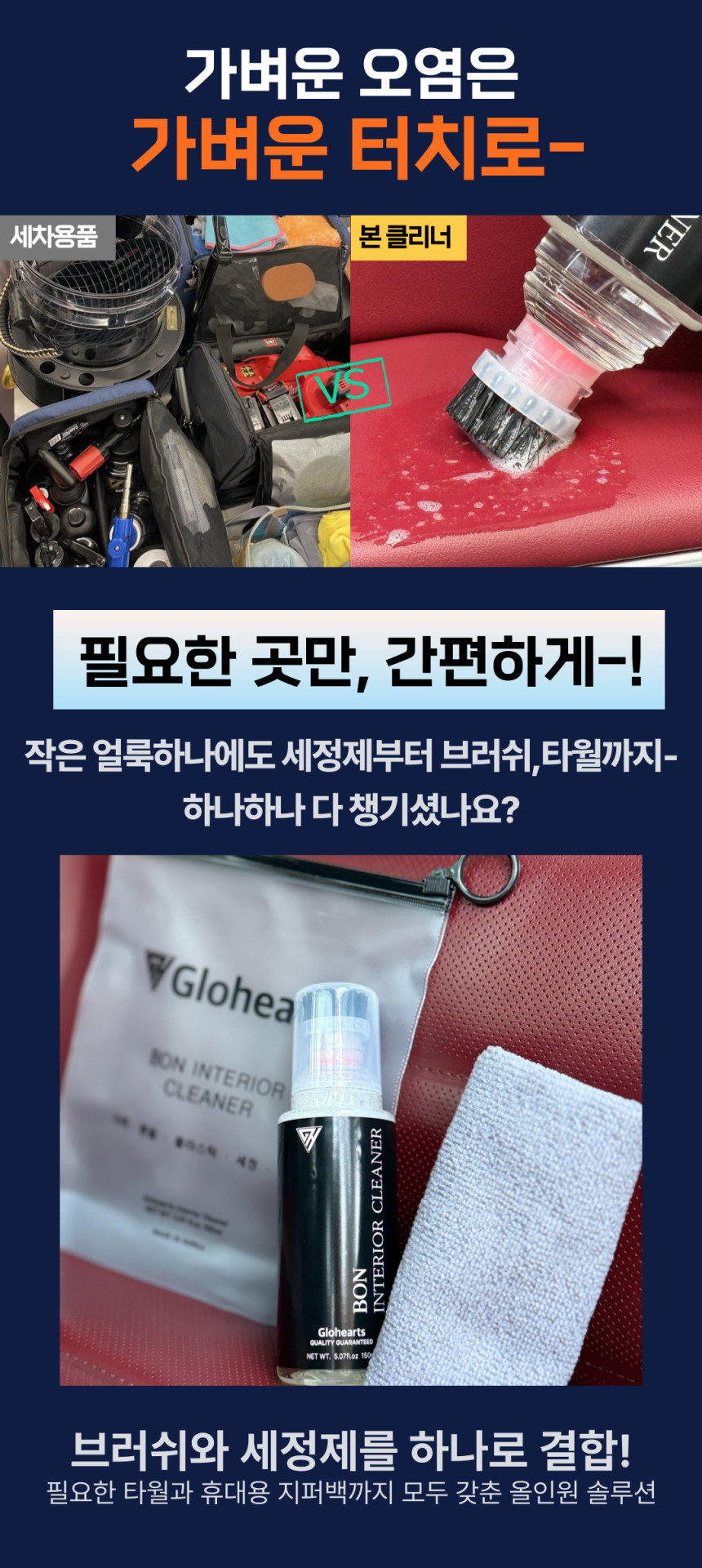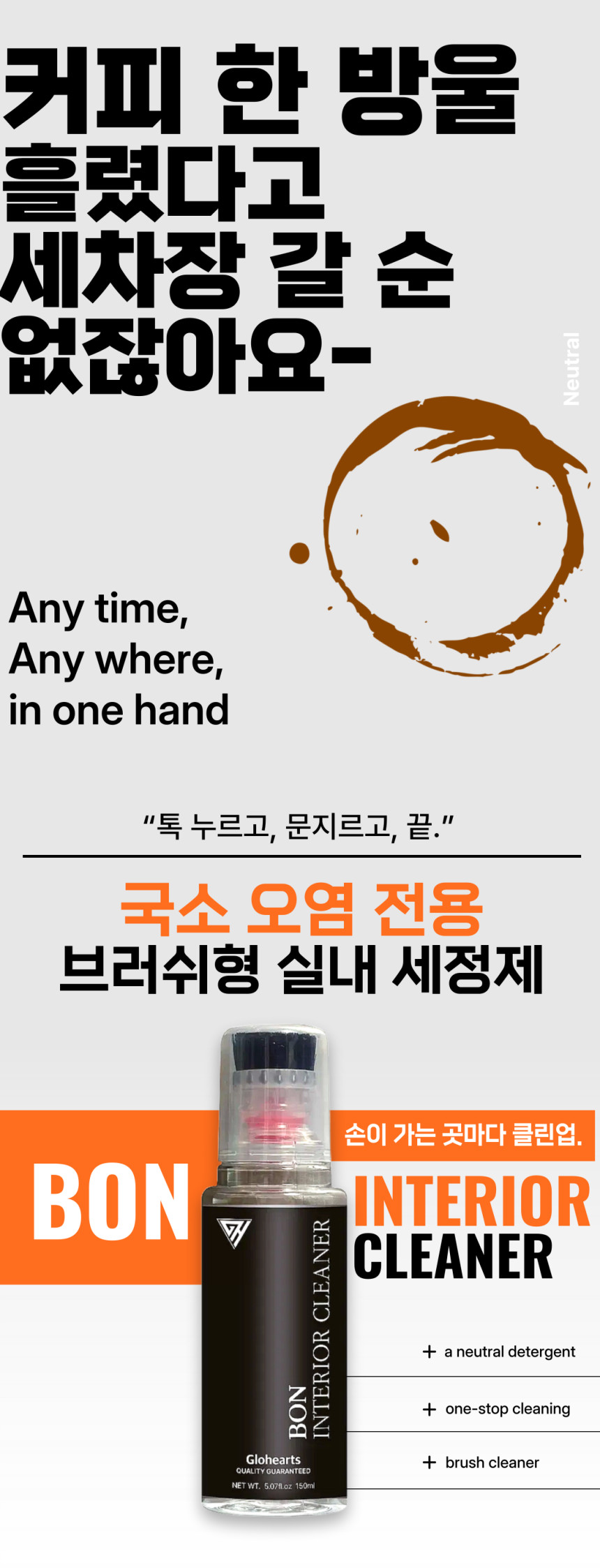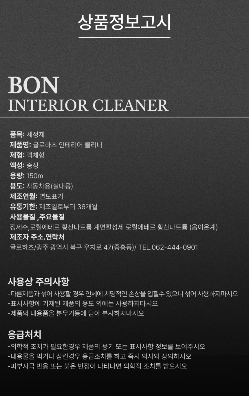 글로하츠 본 인테리어클리너 150ml 브러쉬일체형 실내세정제 가죽 핸들 플라스틱