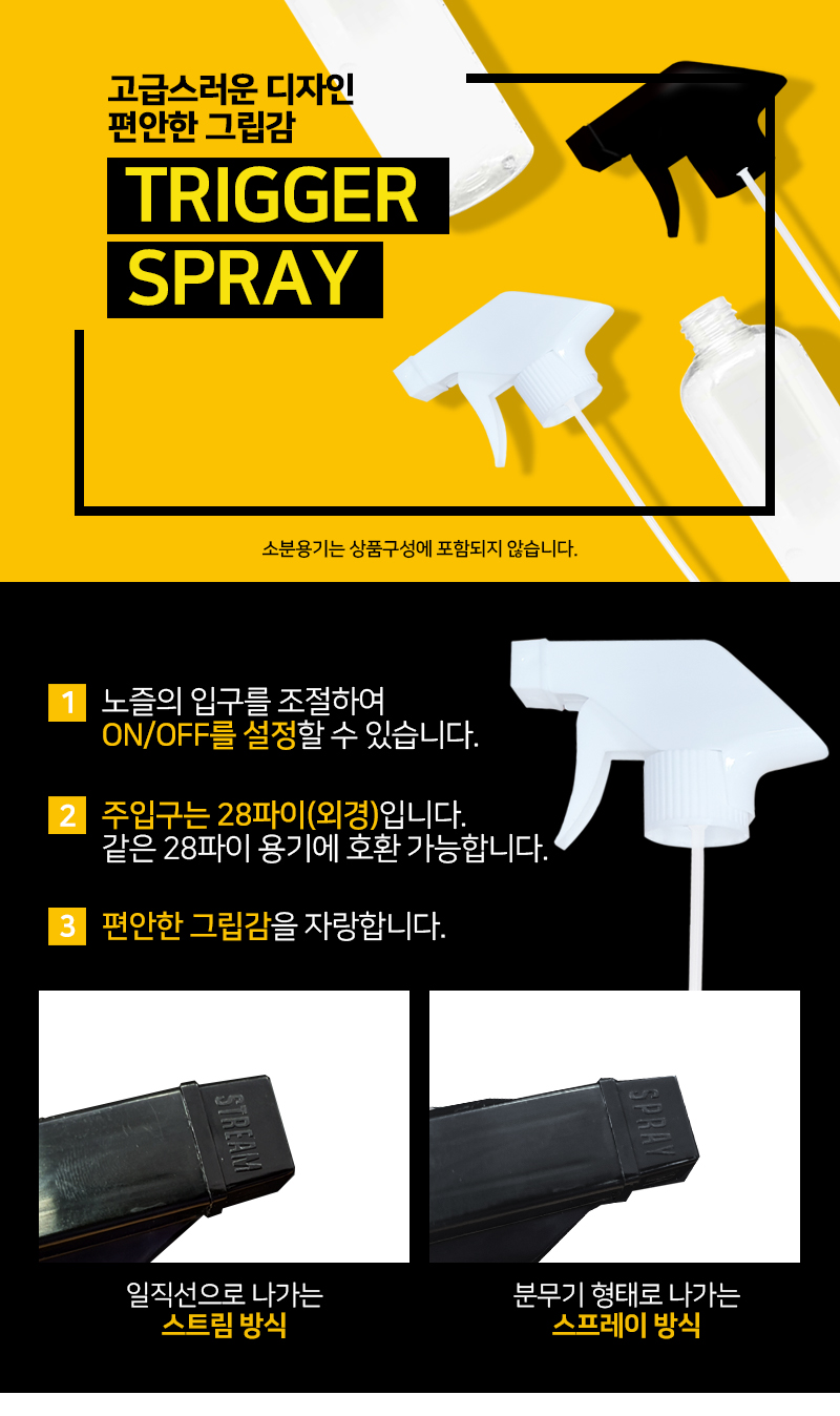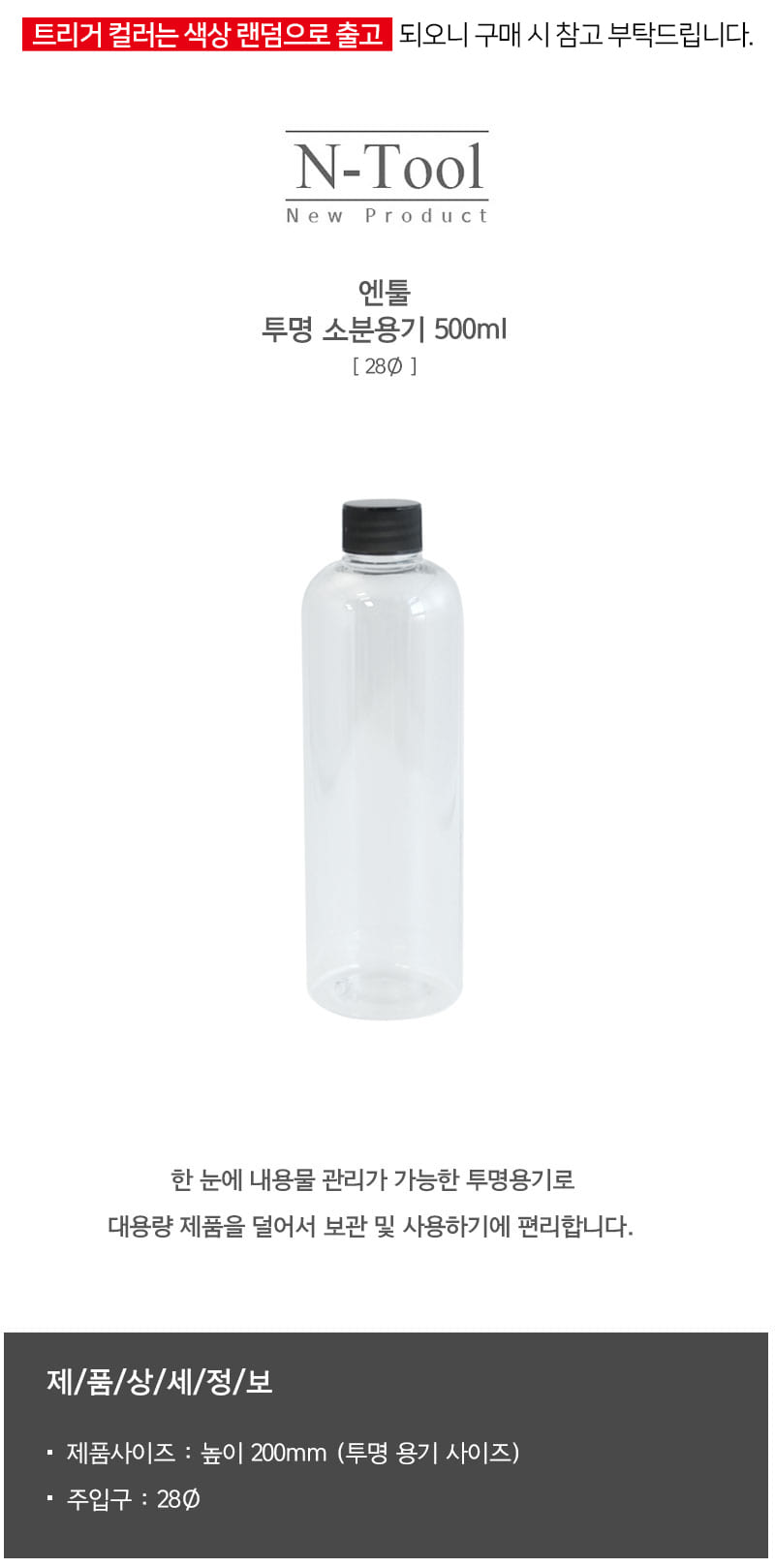 엔툴 투명 소분용기 500ml 20cm + 28파이 트리거 + 기본뚜껑