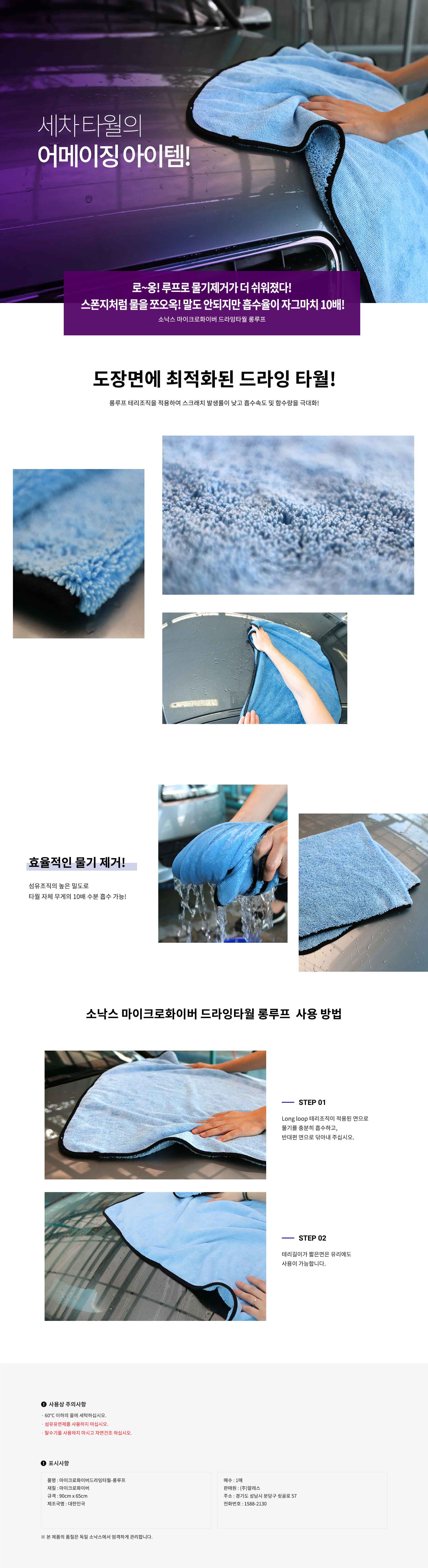 소낙스 마이크로화이버 드라잉타월 롱루프 90x65cm
