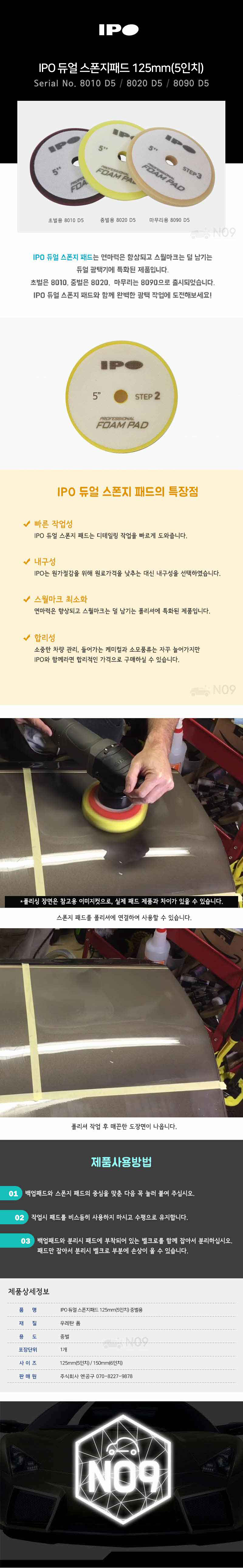 IPO 5인치 듀얼 스폰지패드 중벌용 (아이보리) 2개입 PN8020 D5