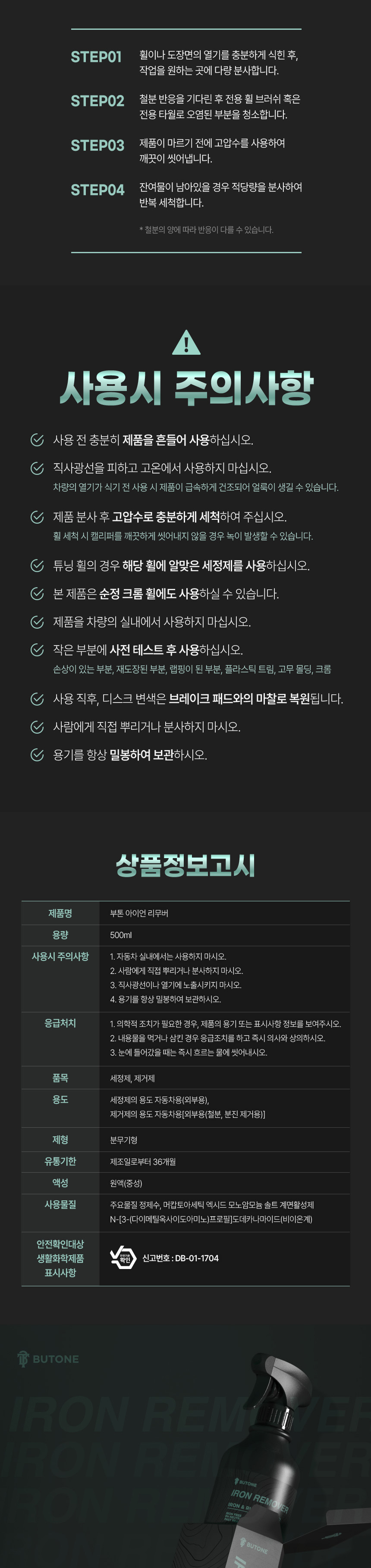 부톤 아이언 리무버 500ml x 2개입 철분제거제 휠세정 분진제거 (유통기한 임박상품)